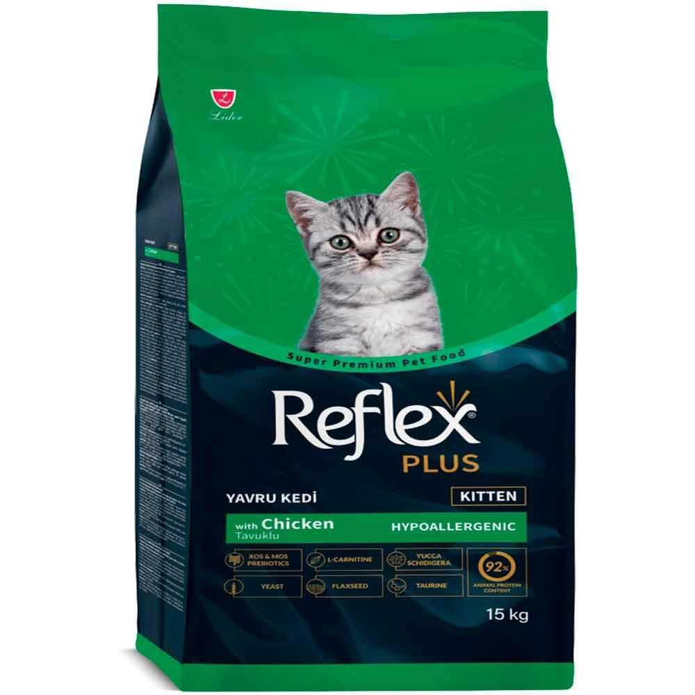 Yavru kediler, sağlıklı bir gelişim ve mutlu bir yaşam sürebilmeleri için özenle seçilmiş bir beslenmeye ihtiyaç duyarlar. Reflex Plus Kitten Tavuk Etli Yavru Kedi Maması 15 Kg, 12 aylıktan küçük tüm ırklardan yavru kediler için özel olarak geliştirilmiş bir süper premium kedi mamasıdır. Bu ürün, kedinizin gelişim ihtiyaçlarını karşılayacak şekilde dengeli besin bileşenleri ve yüksek kaliteli tavuk proteini ile formüle edilmiştir.